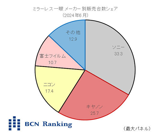 メーカーシェアはソニーが33.3%で首位。キヤノンを逆転して首位に返り咲いた。