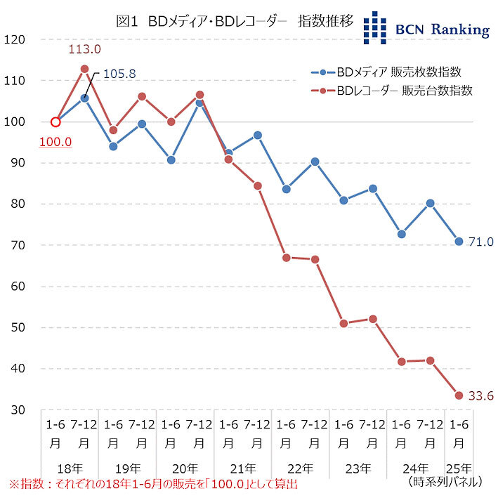 パナソニック・ソニー撤退後のBDメディア市場 2025/08/07 18:00 Tweet 1/2 BDメディア・BDレコーダー 指数推移 記事詳細ページ データサービス・リサーチについて お問い合わせはこちら 注目の記事 メモリ市場、生成AIやゲーミングを背景にDDR5の比率が4割目前 「新4K/8K衛星放送」対応テレビが出荷・販売台数で半数超え! 負の連鎖に陥るレコーダー市場、出荷と普及率、発売機種数のすべてで減少 無線LANルーター市場でWi-Fi 7対応比率が過去最高、2割に迫る 【実売データでわかる売れ筋ランキング(1位~20位)】(毎週木曜日更新)