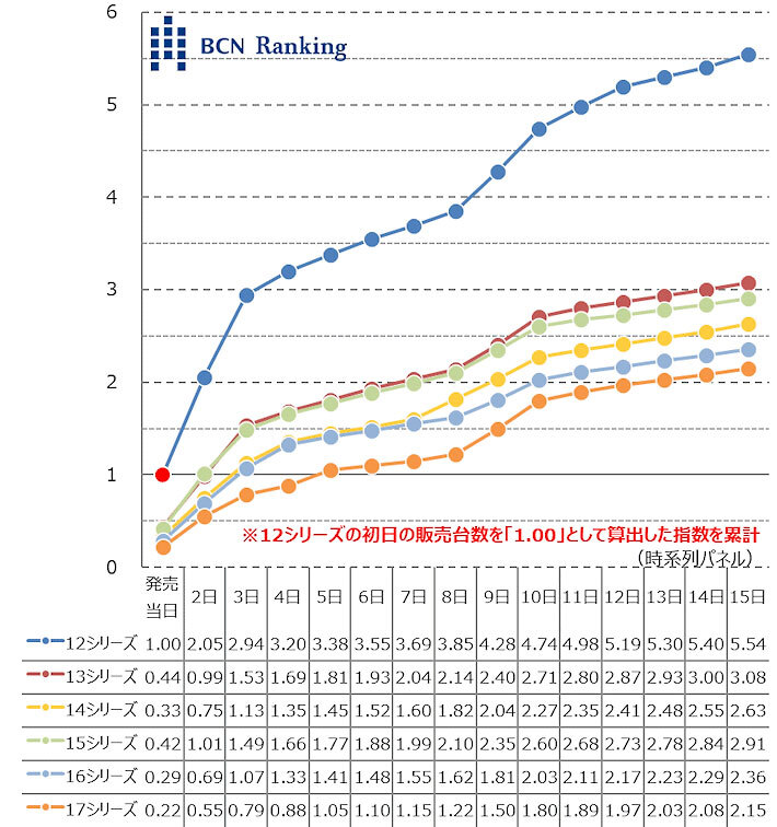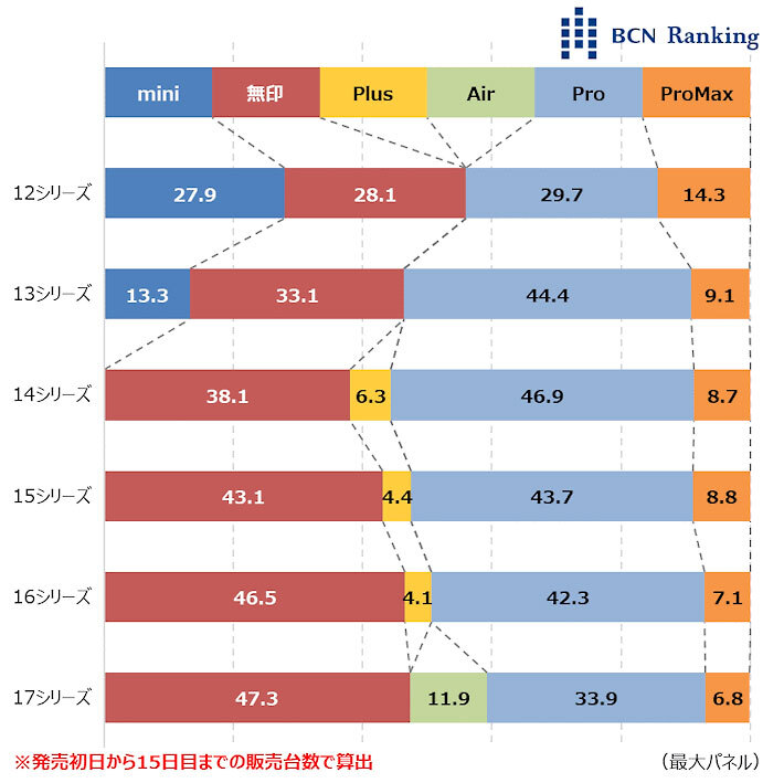 iPhone 17シリーズの初速、12シリーズ以後最低 2025/10/07 18:00 Tweet 1/2 iPhoneシリーズ別累計販売台数指数 記事詳細ページ データサービス・リサーチについて お問い合わせはこちら 注目の記事 SAMSUNGが内蔵SSD市場で首位、安さよりも大容量を優先か? Ankerがアップルを逆転、完全ワイヤレスイヤホン市場で首位 パナソニック・ソニー撤退後のBDメディア市場 メモリ市場、生成AIやゲーミングを背景にDDR5の比率が4割目前 【実売データでわかる売れ筋ランキング(1位~20位)】(毎週木曜日更新)