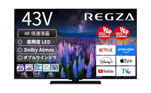 REGZA「55Z870N」が売れてる! 4Kテレビ人気ランキングTOP10 2026/2/3 2026/02/03 12:00 Tweet 1/3 1位 55Z870N 記事詳細ページ ※Amazonのアソシエイトとして、BCN+Rは適格販売により収入を得ています。 REGZA 55インチ Mini LED 55Z870N スマートテレビ Dolby Atmos対応 2024年モデル ¥149,800 Amazonで見る REGZA(レグザ) テレビ 55インチ Mini LED 液晶 4K 倍速 55Z875R ネット動画 2画面機能 Dolby Atmos ¥181,558 Amazonで見る REGZA(レグザ) テレビ 43インチ 液晶 4K 倍速 43Z670R ネット動画 2画面機能 Dolby Atmos ¥100,000 Amazonで見る データサービス・リサーチについて お問い合わせはこちら 注目の記事 【実売データでわかる売れ筋ランキング(1位~20位)】(毎週木曜日更新) 国内初 次世代技術「RGB Mini LED」搭載4Kテレビ TVS REGZA「116ZX1R」 自宅TVを手軽にスマート化!Google・Apple・Amazonの最新ストリーミングデバイスを用途別に比較 外部リンク BCNランキング・データサービス=https://www.bcnretail.com/dataservice/ デジタル・家電・流通の消費者動向を探る、マーケティングリサーチ=https://www.bcnretail.com/topics_detail20/id=82735 液晶テレビ 週間売れ筋ランキング=https://www.bcnretail.com/research/ranking/list/contents_type=169