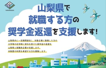 山梨県は、若年層の人材確保と定着を図るため、県内企業への就職を促進する新たな奨学金返還支援制度「やま...