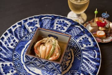 星野リゾートの「界 加賀」九谷焼の器がズラリと並ぶ贅沢ラウンジで冬の逸品「蟹面」を楽しめる特別メニューを提供
