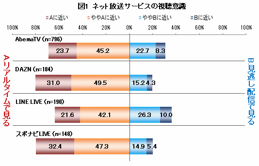 インターネットやモバイル端末の普及により、映像コンテンツはいつでもどこでも自由に視聴できる環境が整った。一方で、コンテンツを提供する動画サービス事業者は増加し、現在では飽和状態になりつつある。各事業者は他社と差別化を図り、独自の優位性があるサービスを提供する必要があるのだ。そのなか、近年では地上波放送のように、放送・配信時間があらかじめ決められている動画サービスが登場し、注目を集めている。株式会社BCNは2017年6月、「AbemaTV」「DAZN」「LINE LIVE」「スポナビLIVE」の4サービスを「ネット放送サービス」と位置づけ、いずれかの利用者1000名を対象に調査を実施。利用の意識や経緯を探った。