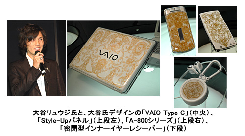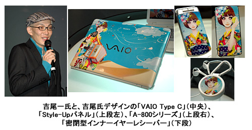 デザインした製品は、(1)PC「VAIO type C」、(2)携帯オーディオ「ウォークマン A800 シリーズ」、(3)密閉型インナーイヤーレシーバー「MDR-KX70LW シリーズ」、(4)ソニー・エリクソン・モバイルコミュニケーションズ製の携帯電話「SO704i」用着せ替えパネル「Style-Upパネル」の4モデル。このほか、ソニービルの壁面に飾る縦38×横6mのイラストも手がけた。