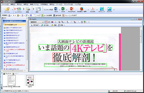 「e.Typist v.15.0」は、元の原稿と文字認識結果を並べて見比べたり、元原稿の上に認識結果のテキストを重ねて配置したりと、誤認識結果を見つけやすくなっている。さらに、認識文字の上を選択するとその他の候補文字を表示する機能も備え、修正作業がすばやくできた。
