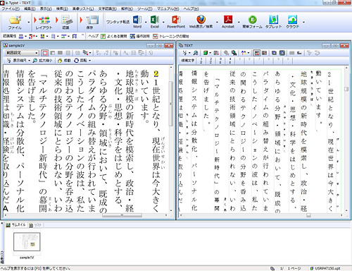 「e.Typist v.15.0」を起動。左上のボタンや左側のメニューから操作する