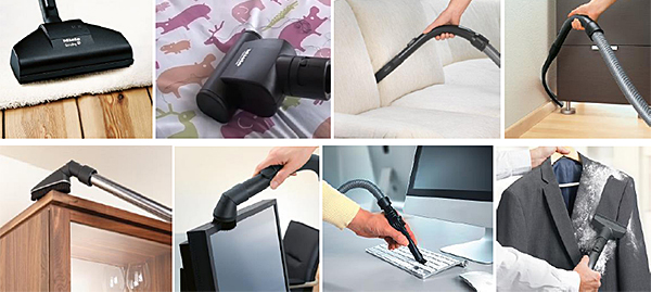 付属する多彩なノズルで、部屋のあらゆる場所を掃除でき、床以外に溜まった花粉を取り去る。テレビなどに静電気で貼りついたチリや、窓のさんなどに溜まったホコリなどをかき集めて吸い取るホコリ取り用ノズル、狭いすき間などに入り込んで溜まったホコリを取り去るすき間用ノズル、ソファやカーテン、ふとん、さらには洋服などに付着した花粉などもしっかり取り去る家具用ノズルの3点のノズルが付属。専用ホルダーで一つにまとめてホース接続部かハンドル部に取りつけることができる。