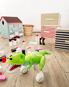 次世代エンターテイメントロボット「Omnibot(オムニボット)」シリーズの最新作。恐竜をモチーフにした恐竜ロボットで、従順なだけでなく、尻尾を引っ張ったりしてイタズラをすると、“目の色を変えて”手におえないほど暴れまくる。