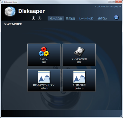 非常にシンプルな「Diskeeper 15J」のインターフェース