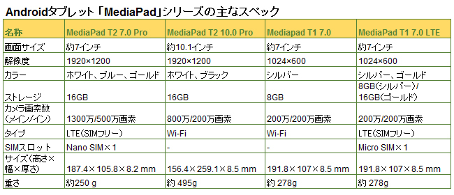 LTE対応のSIMフリータブレット「MediaPad T1 7.0 LTE」
