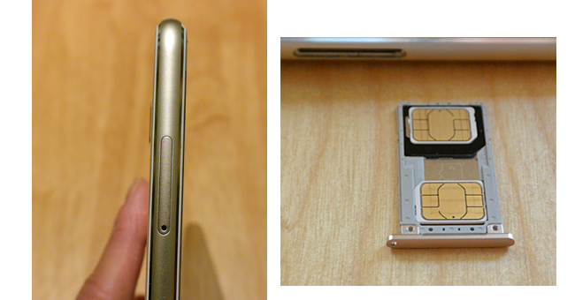 「ZenFone 3」のSIMスロット。SIMカードはトレイに載せて挿入する