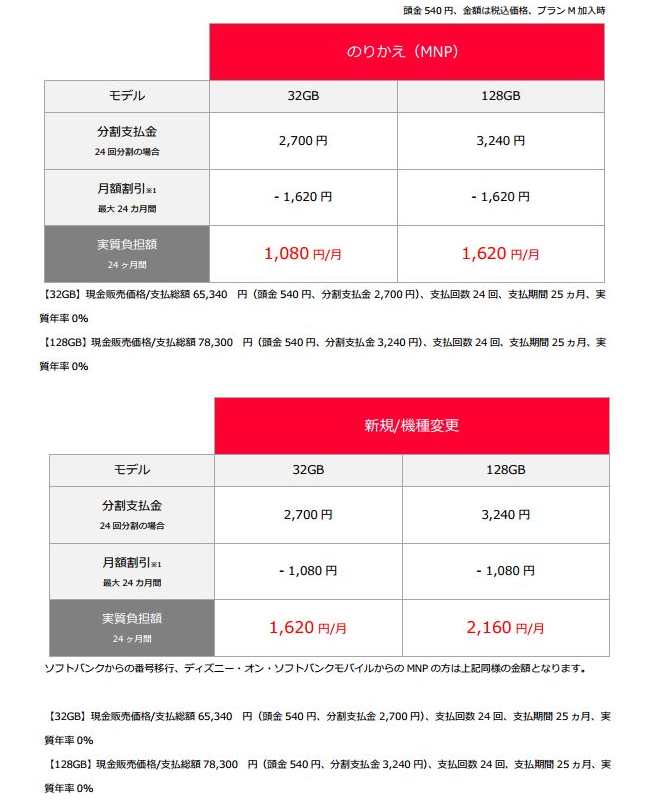 直営店のワイモバイルショップ、オンラインストアでの一括購入時の「iPhone SE」の販売価格は、32GBが6万5340円、128GBが7万8300円。最大24か月間の通信料金の割引きを差し引いた実質負担額は、MNPの場合で32GBが2万6460円、128GBが3万9420円、新規・機種変更の場合で32GBが3万9420円、128GBが5万2380円。