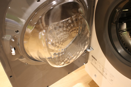 さらに、「シワ抑え」乾燥コースでは、約50度の低温風を衣類に吹きつけることで、シワを伸ばしながら乾燥する。湿度センサで洗濯物の状況を確認しながら乾燥するので、湿気が残る心配は少ない。洗濯槽内には、洗濯物の取り忘れを防止するためにLEDライトがついている。