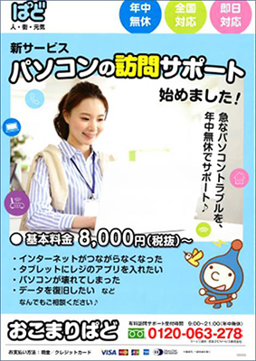 日本PCサービスは12月25日、地域情報誌「ぱど」を発行するぱどと業務提携し、さまざまな困りごとに応えるぱどの新サービス「おこまりぱど」の第一弾として、PCの訪問サポートの提供を開始した。