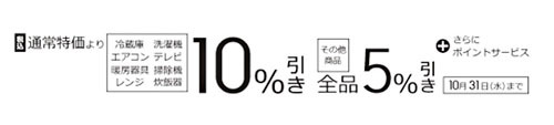 なお、特価品、金券類、Apple製品、酒類、ダイレクトPCなど、対象外の商品もある。また、ビックカメラ・ドットコムでの購入の場合はキャッシュバックでの対応になる。他キャンペーンとの併用は不可。