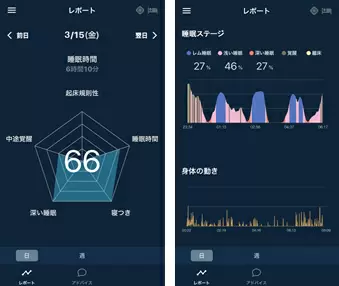 睡眠の質の定量的に確認できる「Real Sleep」の画面イメージ
