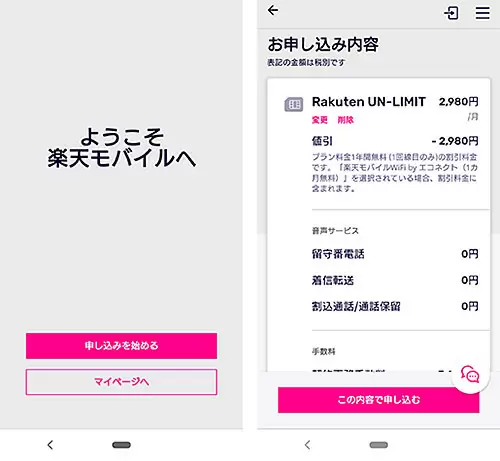 「My 楽天モバイル」は楽天モバイル回線のオンライン申し込みアプリを兼ねており、楽天IDがあれば、回線契約前でもログインできる