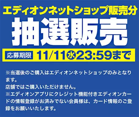 参加条件は、クレジット機能付きエディオンカード会員(家族カード含む)であること。エディオンアプリにカード情報を登録しておく必要もある。なお、すでに店頭で応募して当選している場合は対象外になる。