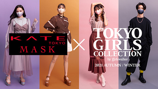 8月17日~30日23時59分の期間は、9月4日にオンライン開催される「第33回 マイナビ 東京ガールズコレクション 2021 AUTUMN/WINTER」とのコラボプレゼントキャンペーンとして、KATE公式Twitterをフォローし、4つの選択肢から1つ選んでツイートすると、KATE小顔シルエットマスク×メイクアイテムと、TGCがコーディネートしたおすすめのトータルコーデ一式を抽選で各3組・合計12名にプレゼントする。