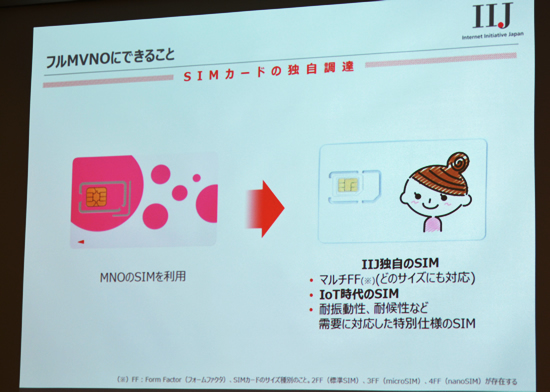 一般的なMVNO方式の通信サービスでは、SIMカードと携帯電話サービスの加入者を紐づける情報(加入者情報)をNTTドコモなどのMNO(移動体通信事業者)が一元的に管理している。今回、IIJは加入者情報を管理する設備をMVNOであるIIJ自身が管理することでNTTドコモと合意を得た。これにより、独自のSIMカードの調達・発行が可能になり、組み込み型SIMの提供など、より自由度の高いサービスを提供できるようになる。