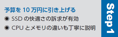 小林氏は、低価格が売りのPCを探している顧客から共感を引き出す有効なトークの一つに「HDDとSSDの違い」があると語る。「多くのお客様がPCが遅くなる原因の一つがHDDにあることはご存知です。HDD搭載PCを購入すると、年を追うごとに快適ではなくなることをお伝えしながら、トータルバリューでお買い得ではないことを説明します」。