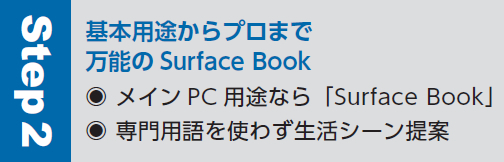 両氏の提案術を参考にしながら、Surface Bookが誰にも最適で付加価値の髙いPCであることを、実演を交えて丁寧に説明すれば、スムーズにクロージングまでもっていけるだろう。