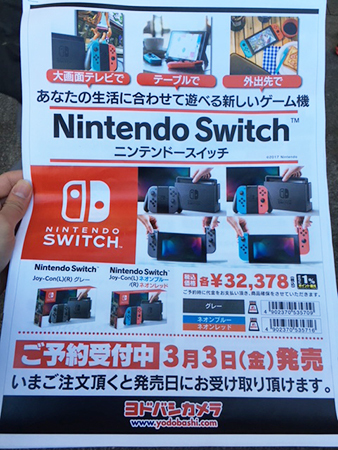 3月3日の発売日からは状況が一変。当日販売分は即完売、予約者の受け取りにも早朝から行列ができるほどの盛り上がりを見せた。一方で、発売から間を置かずにオンラインストアや一部店舗で中古のニンテンドースイッチが販売され始め、各所で議論を呼んだ。