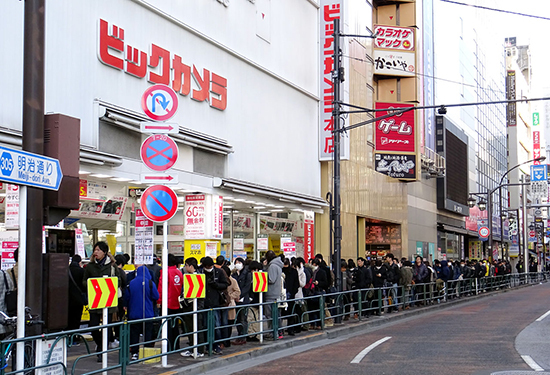 発売日当日のビックカメラ池袋本店の様子。9時時点で約400名が店舗内外に列をつくった