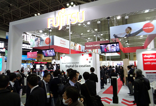 各種店舗向けソリューションが展示された「リテールテックJAPAN」の富士通ブース