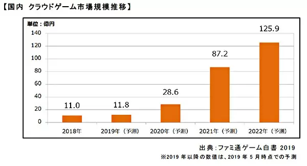 全てのサービスが日本で展開されるかは未定だが、Gzブレインは18年のクラウドゲーム市場規模を11億円と推計。新たなサービスの登場や普及により、19年には11.8億円、20年には28.6億円、22年には125.9億円になると予測する。