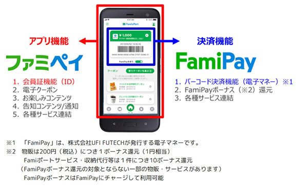 ユーザーは、ポイントカードの提示、クーポンの提示、代金の支払いなどを「ファミペイ」を使えば完結できる。また、会員属性や購買履歴などの条件をもとに「おすすめ商品」のクーポンがもらえるほか、スタンプ対象商品の購入でスタンプが自動的に貯まってクーポンやゲーム挑戦権などに交換できる。