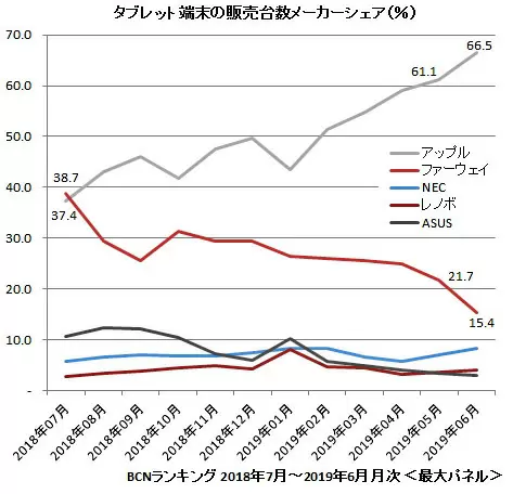 タブレット端末でもファーウェイ失速でiPadのシェアがさらに拡大