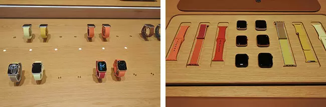 店舗の中央に2階分の高さのアトリウム(吹き抜け)があり、インフォメーションディスプレイと椅子が置かれた「フォーラム」では毎日、無料プログラム「Today at Appleセッション」が開催される(新iPhone発売のため9月20日~22日は開催なし)。木質感あふれる店内のメインエリアでは、「iPhone 11」「iPhone 11 Pro」「iPhone 11 Pro Max」と、同時発売のスマートウォッチ「Apple Watch Series 5」が並び、ひっそりと値下げして継続販売する「iPhone XR」「iPhone 8」の展示もあった。