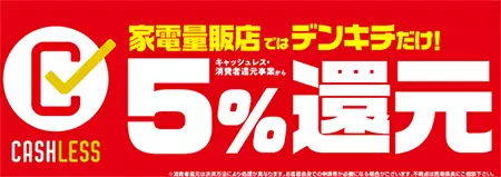 家電量販店で唯一、経済産業省の「キャッシュレス・ポイント還元事業(消費者還元事業)」で5%還元対象店と公称している、埼玉・東京・千葉の1都2県に店舗を展開するデンキチは11月15日、店舗に続き、インターネット通販サイト「デンキチWeb」も官製キャッシュレス5%還元の対象となったと発表した。