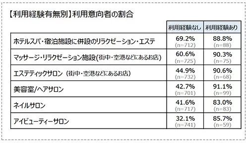 日本での美容関連のお店・サービスの利用意向(利用経験有無別)