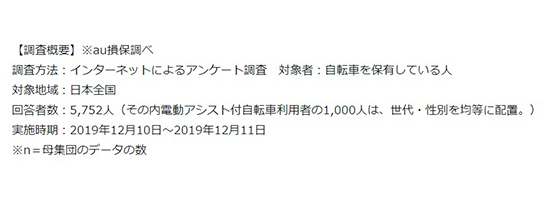 au損害保険(au損保)は、全国の自転車を利用している男女を対象に電動アシスト付自転車の保有率や利用実態を調査した。