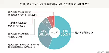 9月にマイナポイント事業が開始されるが、「顧客のキャッシュレス決済利用を歓迎するか」という問いに対し、利用を歓迎する、と回答した店舗は4割にとどまった。