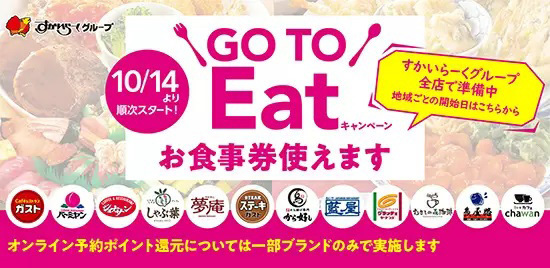 すかいらーくホールディングスは、「Go To Eatキャンペーン」に参画し、同グループの全ブランドでプレミアム付き食事券を使えるようにするとともに、一部ブランドでオンライン予約ポイントの付与を実施する。