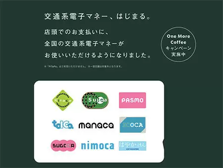 スターバックス コーヒー ジャパンは1月13日、交通系電子マネー(Kitaca、Suica、PASMO、TOICA、manaca、ICOCA、SUGOCA、nimoca、はやかけん)による支払いに対応したと発表した。対応店舗は、交通系電子マネー対応案内ページの「使えるお店を探す」から探せる。
