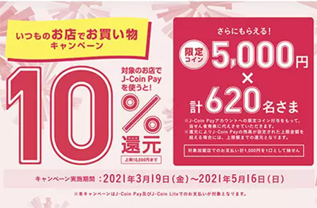 4月以降もお得な「J-Coin Pay」、10%還元を開催中