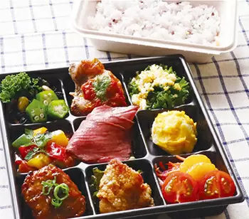 メニューの例として、大人気の「ローストビーフ」を1人用サイズの弁当にした「ローストビーフライスBOWL」(価格は980円)は、特製の赤ワインソースが肉の旨味を引き立ててライスとの相性もいい。「ローストビーフライス&パワーサラダ」(同1280円)は、肉も野菜もしっかり取りたい人におすすめだ。