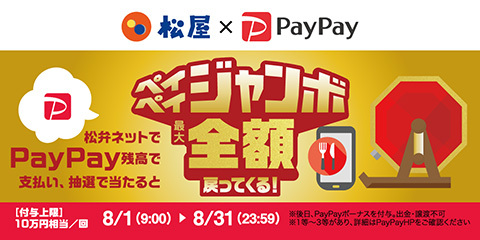 松屋は8月1日からスマートフォン決済サービス「PayPay」とコラボした「飲食ネット注文で当たる!ペイペイジャンボ」を開催中。対象になるのは、持ち帰り弁当サービスの「松弁ネット」。決済時にPayPayを利用すると、抽選で決済金額が戻ってくるくじを引ける。
