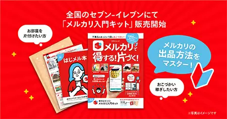 メルカリは10月12日に全国のセブン-イレブンで、「メルカリ」の使い方を自宅で簡単に学ぶことができる「メルカリ入門キット」の販売を開始した。価格は198円。また、発売を記念し、10月14日から「メルカリ入門キット」を購入した人にセブンプレミアム商品(全9種類から1種類)を無料で引き換えられるレシートクーポンキャンペーンも実施する。