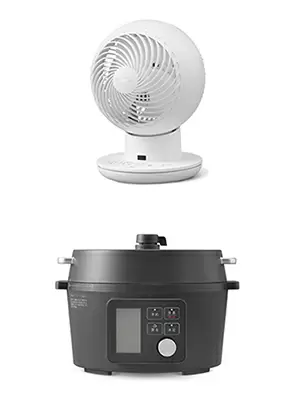 家電部門の2位には電気圧力鍋「KPC-MA4」(4.0L)、3位にはサーキュレーターアイ「DCsilent KCF-SDS151T」が選ばれている。