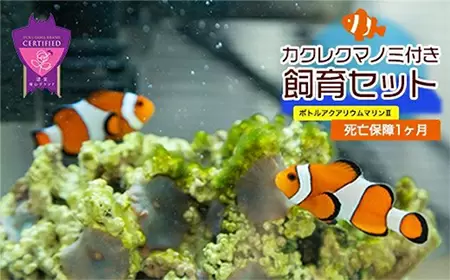 映画「ファインディング・ニモ」で一躍有名となったカクレクマノミも返礼品になっている。広島県福山市の返礼品として用意されているカクレクマノミは飼育セットつきとなっており、手軽に飼い始めることができる。しかも、ボトルで飼うタイプで、置き場所に困らないのがうれしい。ろ過器やエアーポンプが不要のため、音も静か。万が一の時のために、1カ月の死亡保障つきなのも初心者には安心だ。