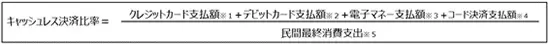 このキャッシュレス決済比率は、クレジットカード・デビットカード・電子マネー・コード決済の支払額の合計値を、内閣府「国民経済計算」(名目)による「民間最終消費支出」で割った数値。それぞれの出典については前年実績を公表した後に、キャッシュレス決済の推進状況を把握するための指標として、経産省において暦年のデータを用いて毎年算出・公表している。