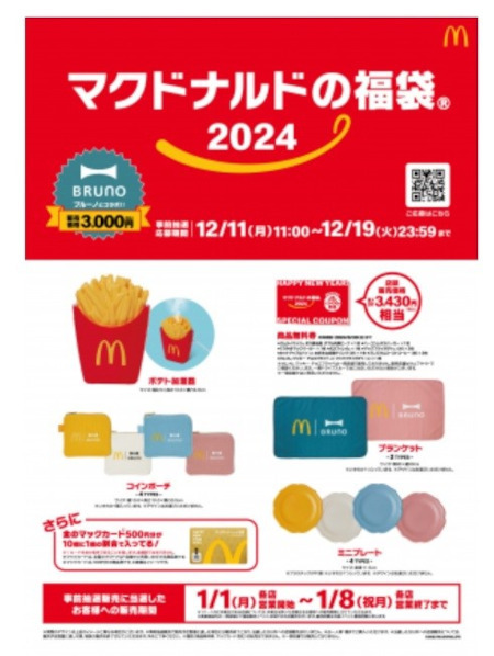 「マクドナルドの福袋2024」数量限定で発売、BRUNOと初のコラボ