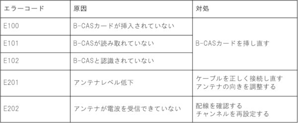 テレビ画面に「エラー表示」が出ている場合は、表示番号にしたがって対処法が異なります。取扱説明書にエラー番号が表示された場合の対処法が記載されているため、説明書の手順通りに対処してみましょう。