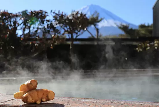 今回の風呂の日イベントは「生姜の湯」として、生姜のスパイシーな香りに包まれて富士山を眺められる。開催時間は10時~21時(20時最終入館)。