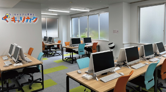 今年9月1日付で全国12店舗目として広島駅から徒歩6分の場所にキャリカク広島駅オフィスを開設した。この秋には13店舗目のキャリカク小山駅が開設予定として本部研修を行い、内装や設営、利用者が満足するようパソコンやカリキュラム準備を進めている。